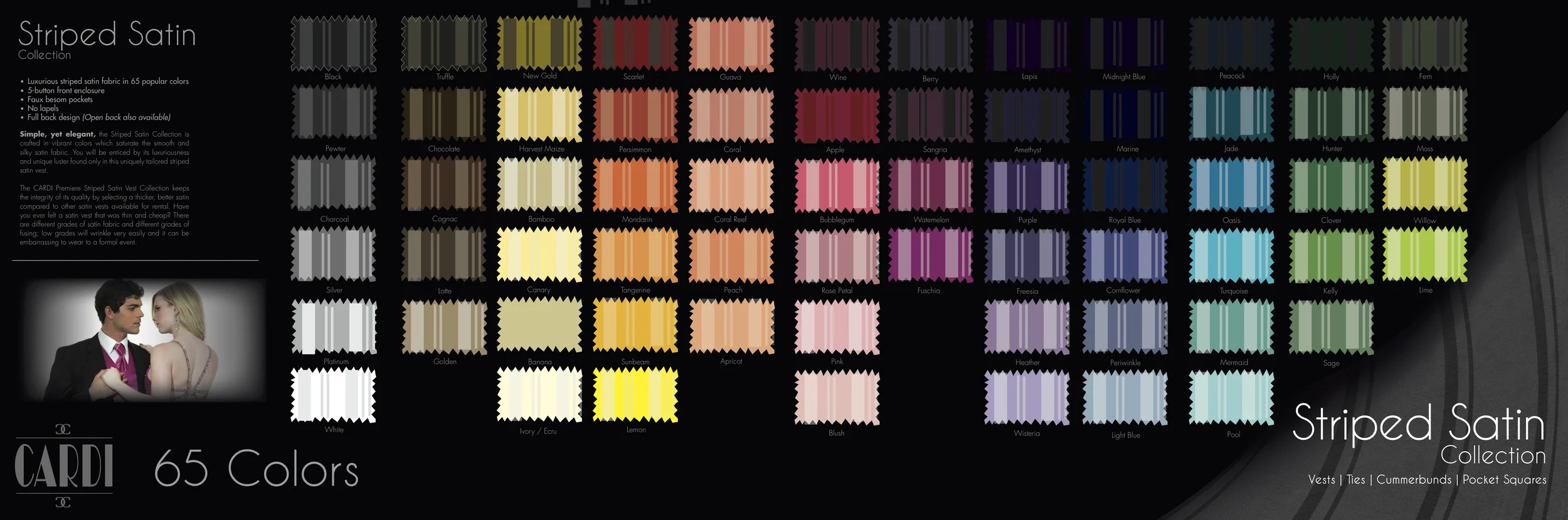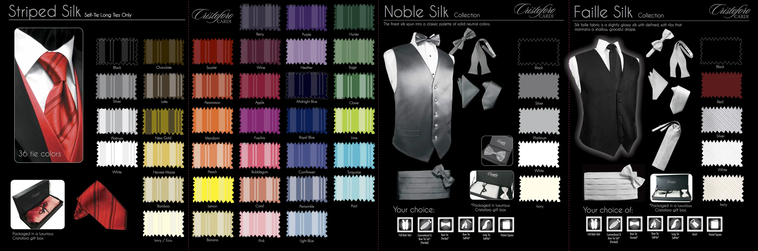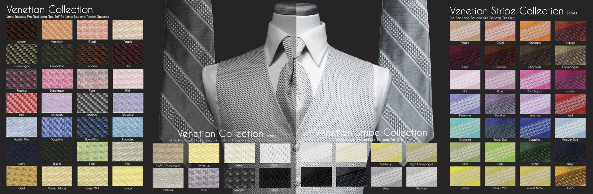 Tuxedo Den Redding has a large selection of in stock tuxedo styles including tails, notch lapel, peak lapel, shawl collar, in a variety of color options including black, white, grey, and brown. Our sizes range from boys size 3 up to men's size 70. In addition we carry a wide color selection of vests, windsor ties, cummerbunds, bow ties, shirts, and shoes to complete your look.